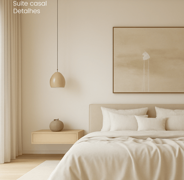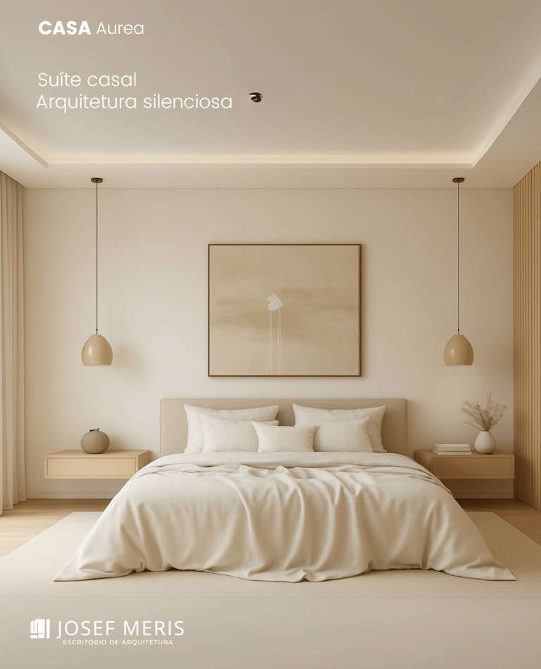 Ao projetar esta suíte de casal, busquei traduzir em espaço construído aquilo que considero essencial na arquitetura: a capacidade de silenciar os excessos para permitir que a vida aconteça em plenitude. A proposta nasceu a partir da estética japandi, que une a serenidade japonesa à simplicidade escandinava, criando uma atmosfera onde o mínimo se torna suficiente e cada detalhe carrega um sentido maior.