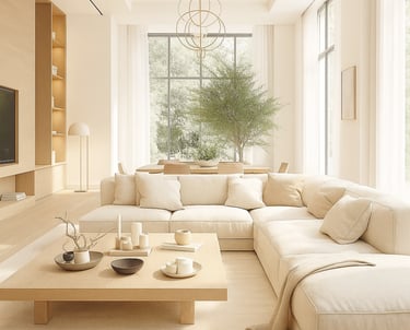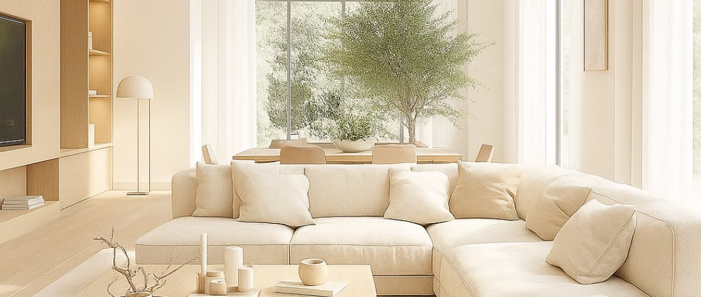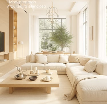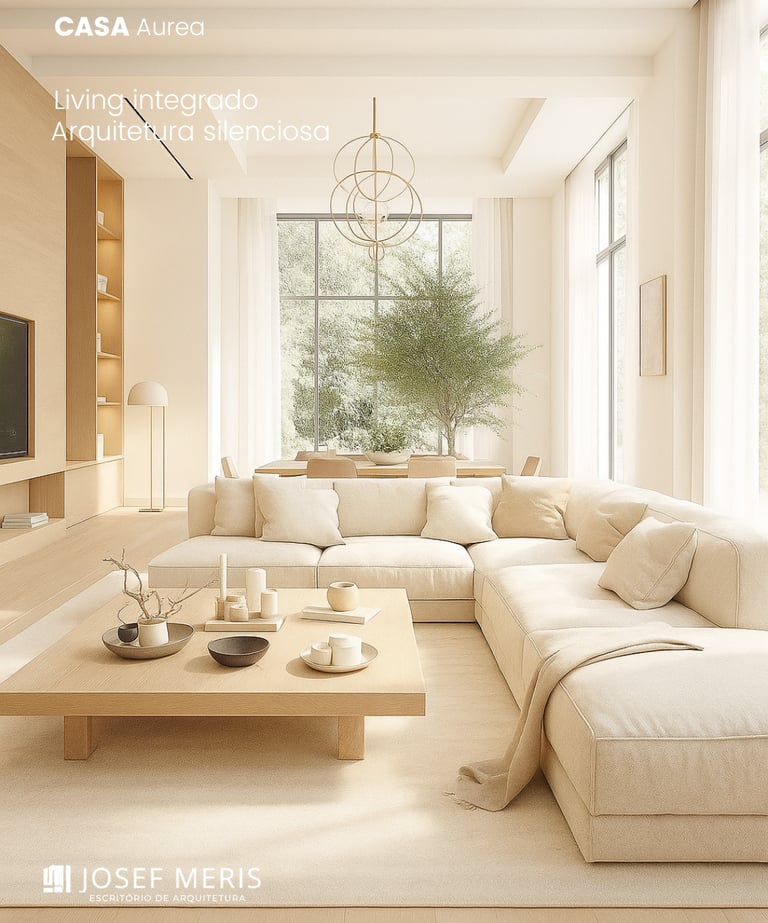 Este living integrado é, acima de tudo, uma experiência sensorial. A cada instante, a luz natural redesenha o ambiente, oferecendo novas percepções e reforçando o valor do silêncio arquitetônico. É nesse diálogo entre simplicidade, natureza e conforto que reside a essência da estética japandi, capaz de transformar o ato de habitar em contemplação.